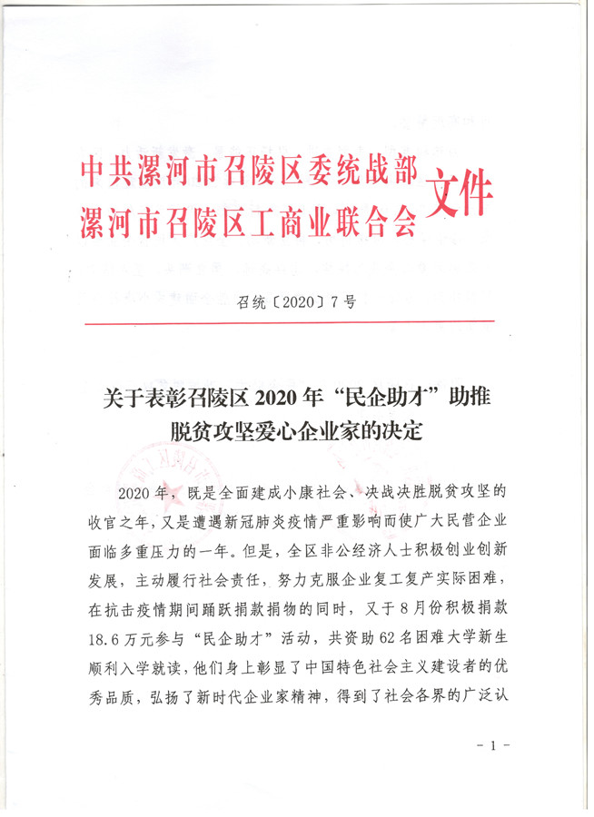 “民企助才”是2020年有中國漯河市召陵區(qū)委統(tǒng)戰(zhàn)部和漯河市召陵區(qū)工商業(yè)聯(lián)合會(huì)所倡導(dǎo)的一次募捐活動(dòng),旨在幫助家庭貧困、入學(xué)困難的大學(xué)新生能夠順利入學(xué)。